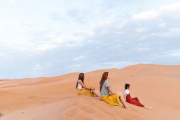 This 4-day desert tour from Fes to Marrakech is designed to take you from Fes to Marrakech while spending two nights in the desert of Erg Chebbi in Merzouga. The tour includes a desert exploration to visit nomadic families and a camel trekking adventure to spend a night under the starry sky, watching the magical sunrise and sunset. You will also have the chance to enjoy local food and music around the fire. In addition to the desert experience, this tour highlights UNESCO World Heritage tourists attractions such as the old Kasbahs and takes you through the stunning landscapes of the Middle Atlas Mountains and the High Atlas Mountains. If the itinerary does not meet your needs, please contact us to customize your own private desert tour.